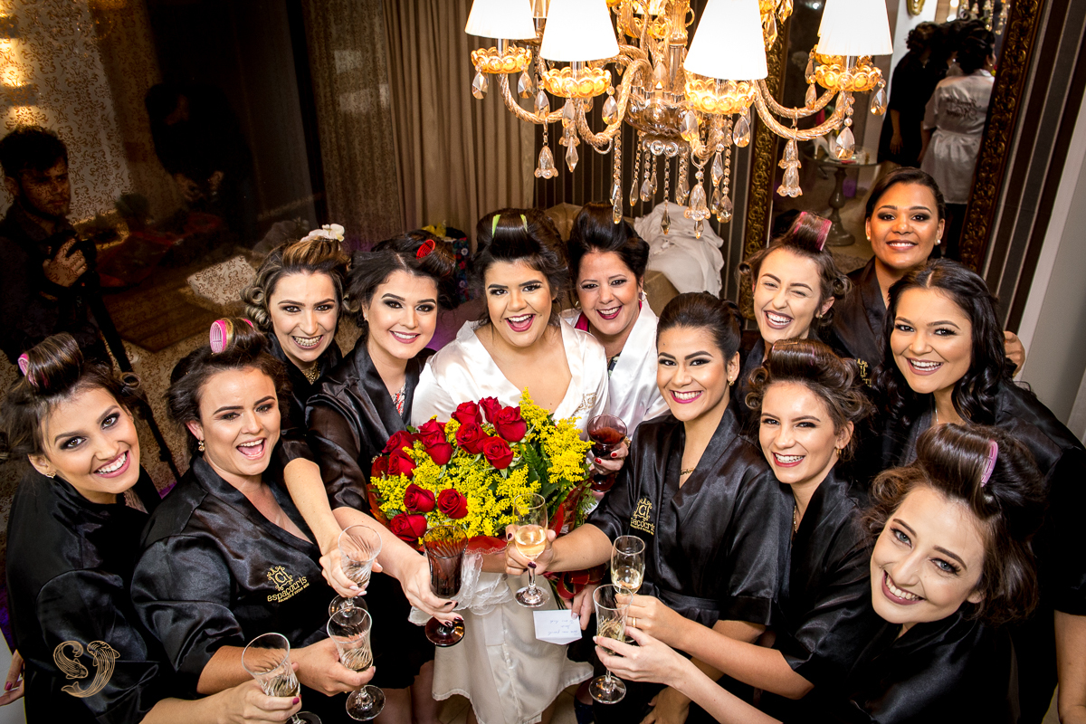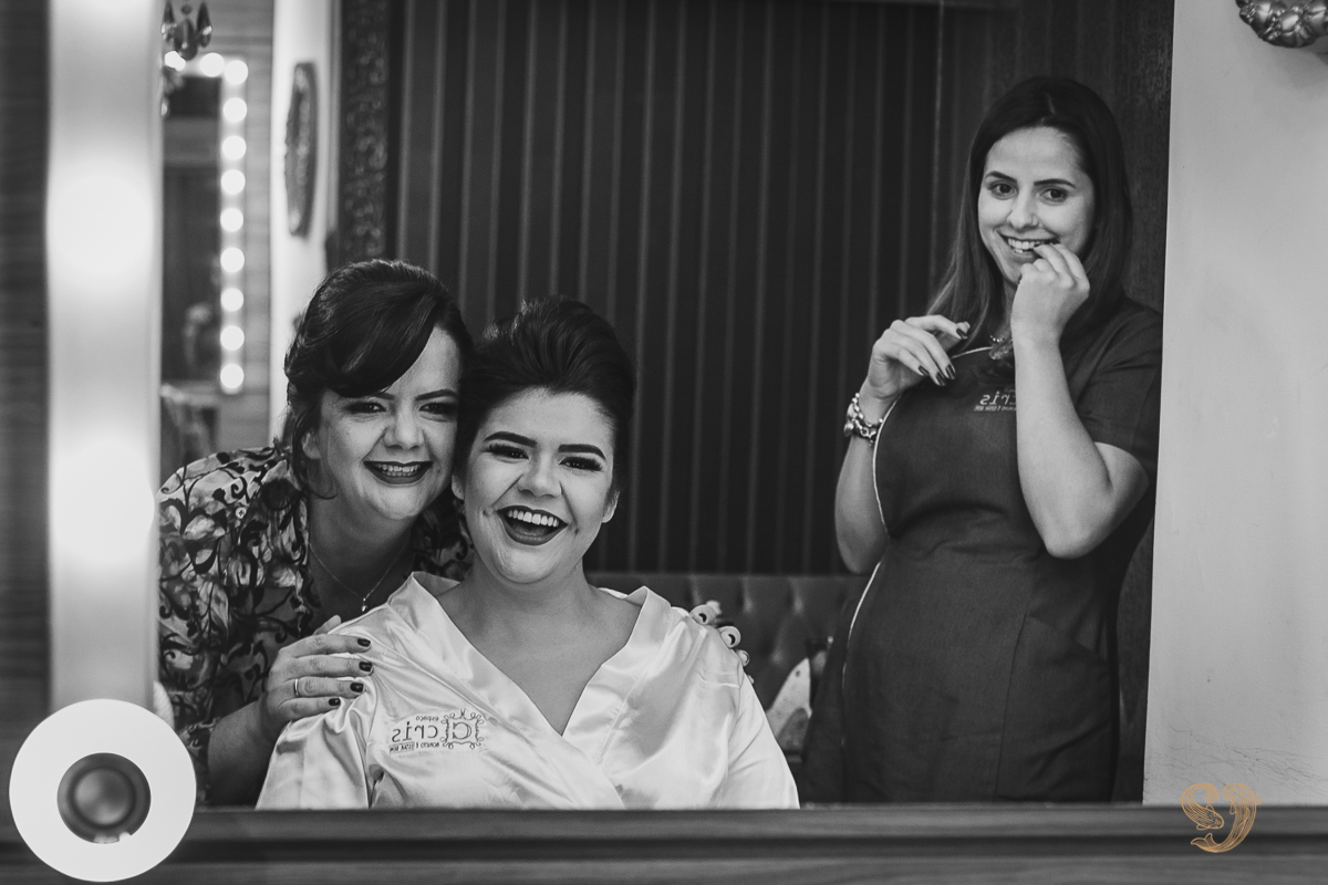 Amanda se produziu no Espaço Cris onde se reuniu com suas madrinhas.